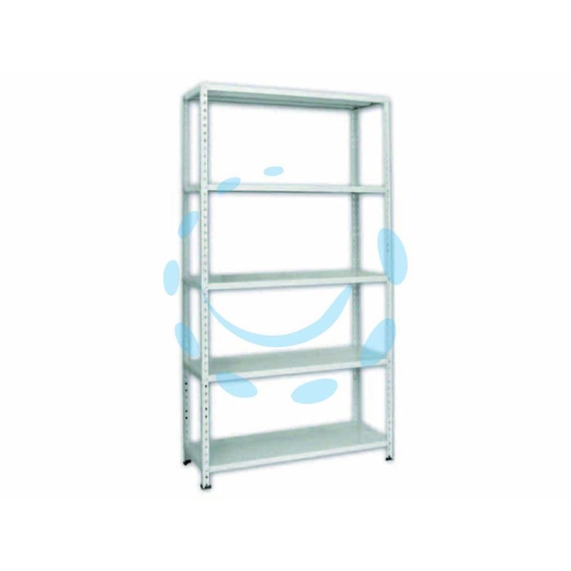 predisposti in un imballo in kit di pezzi componibili in lamierati d’acciaio profilati a freddo e successivamente verniciati, i ripiani vengono realizzati con la terza piega interna, presente ai quattro lati per garantire una maggiore affidabilità , solidità e sicurezza nel montaggio - capacità di carico kg.400, kg.80 per ripiano con carico distribuito uniformemente - 8 montanti da cm.95