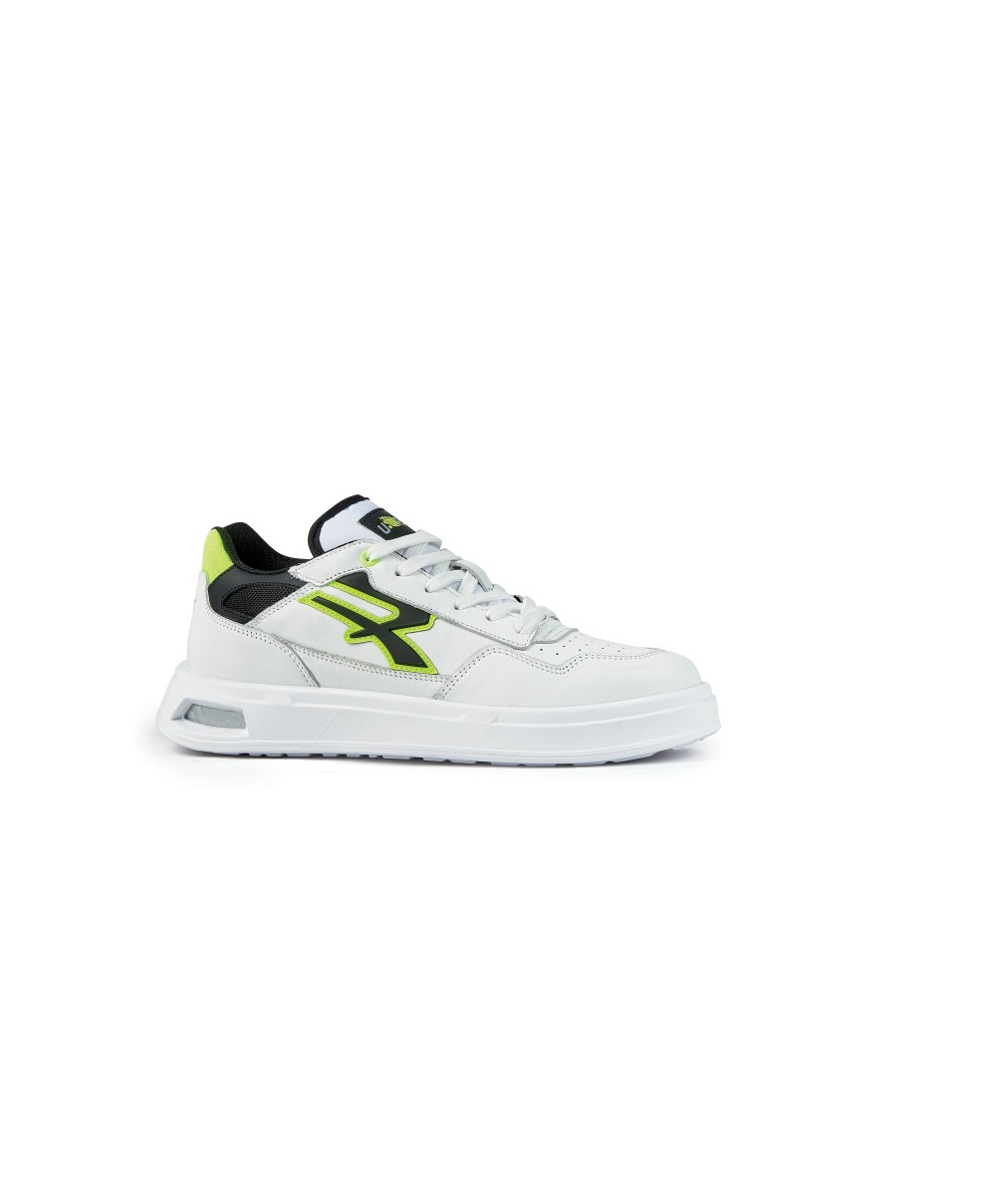 Tomaia in morbida pelle bianca e nylon. Fodera interna in mesh traspirante. Linguetta in tessuto. Punta traforata per garantire maggiore traspirabilit. Stringhe piatte in cotone. Coprisottopiede in pelle. Suola in poliuretano con inserto Infinergy che immagazzina oltre il 55 di energia e la restituisce ad ogni passo. Normativa EN 203472022. Classe di protezione OB SR - suola certificata antiscivoloNumero 46