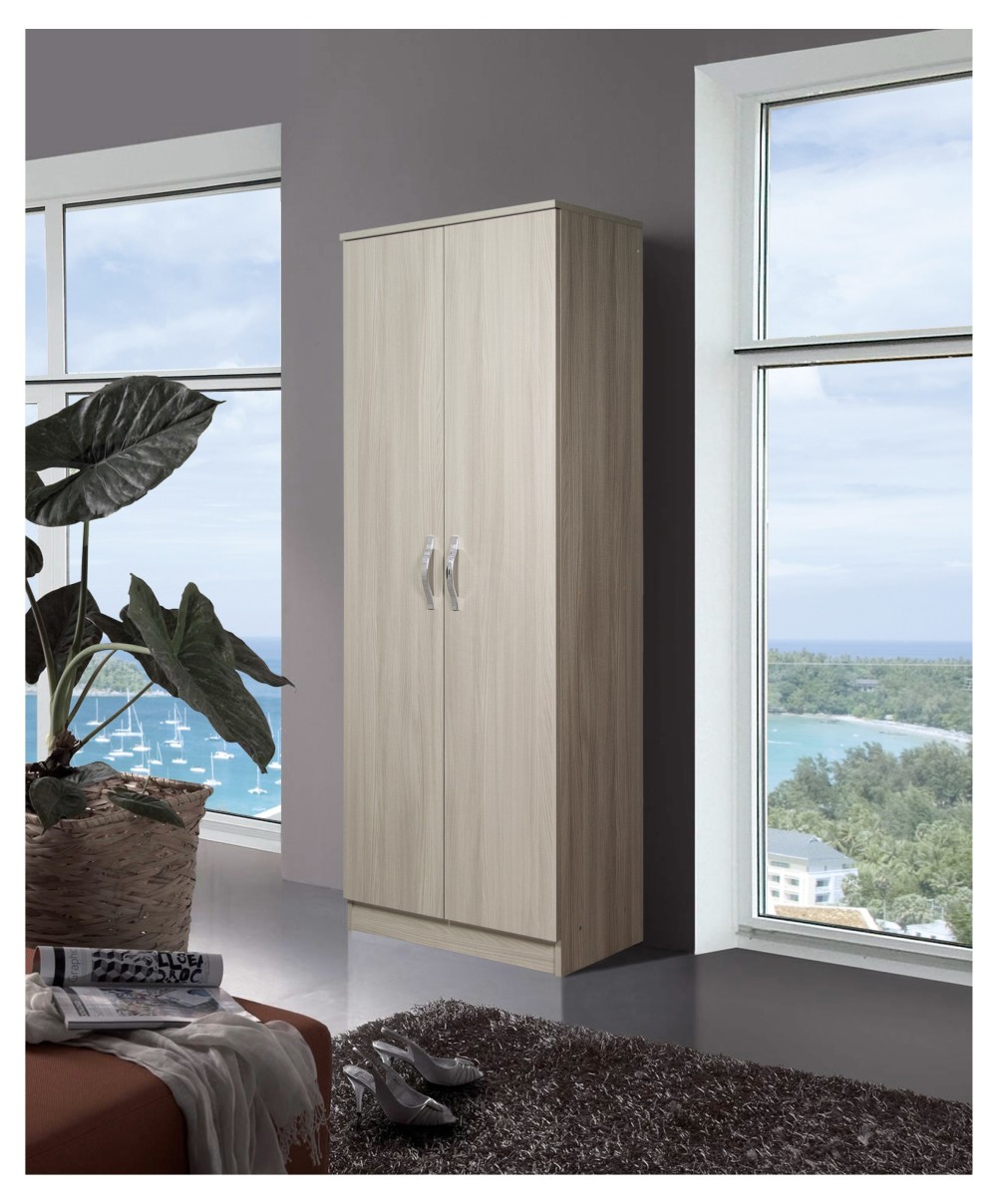 armadio a 2 ante e 5 ripiani dalle linee moderne. Facile da montare e da pulire. Dimensioni 71 x 38 x h 182 cm. Colore olmo.