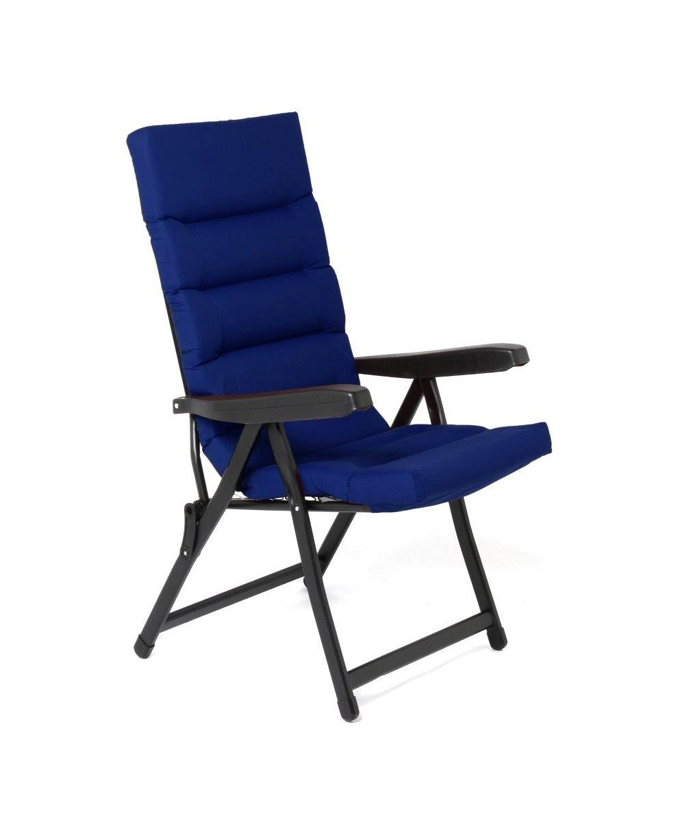 struttura in tubolare ottagonale di acciaio mm 35x20 Cuscino in policotone spessore 6 cm Braccioli antinfortunistica. Regolabile in 6 posizioni Colori assortiti