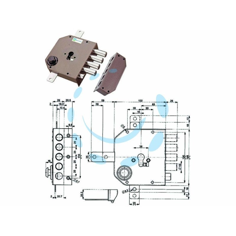 4 mandate - scatola in acciaio verniciato - catenacci a pistoni in acciaio cromato - dotazione: 1 mostrina - 1 ferrogliera - 2 passanti aste - 1 cavallotto - viti e minuteria - cilindro e aste non comprese.