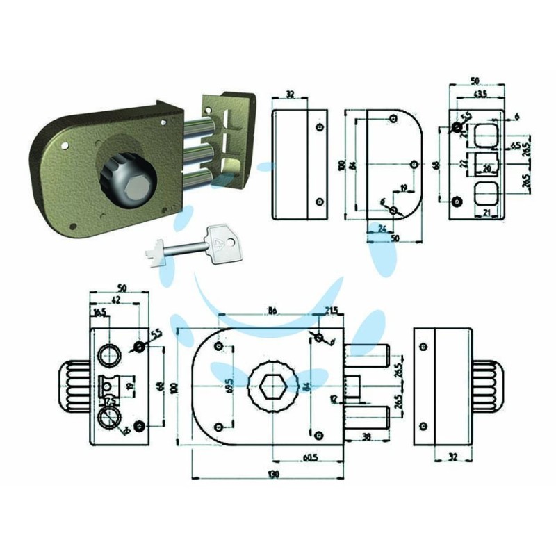 serratura con cilindro a pompa senza scrocco - applicazione: planare - 3 catenacci - comando interno: pomolo - finitura verniciata - 1 punto di chiusura - corsa catenacci mm.38 - lunghezza cilindro mm.60 - accessori inclusi: ferrogliera, mostrina esterna, viti