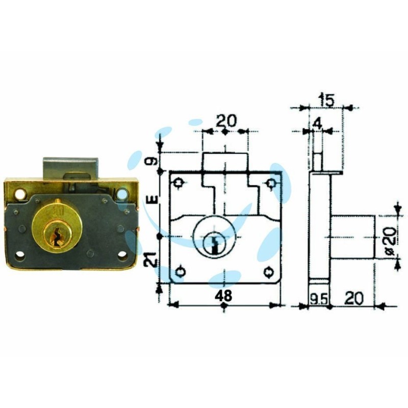bordo in acciaio ottonato, cilindro in ottone ø mm.20, catenaccio in acciaio nichelato, dotazione 2 chiavi con impugnatura in metallo