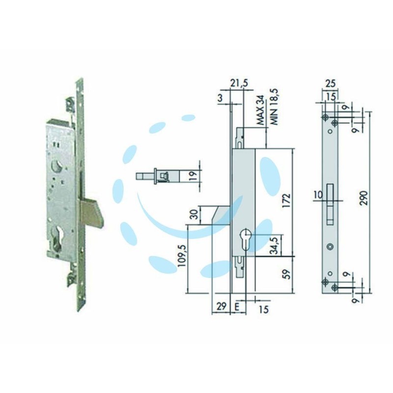 Serratura triplice da infilare per montanti solo catenaccio 46820 - 1 PZ
