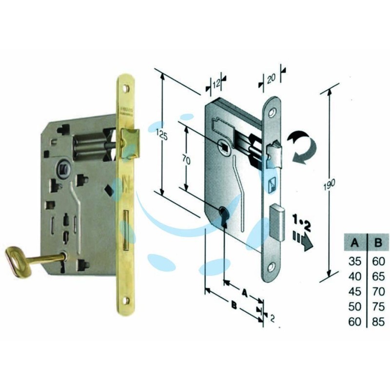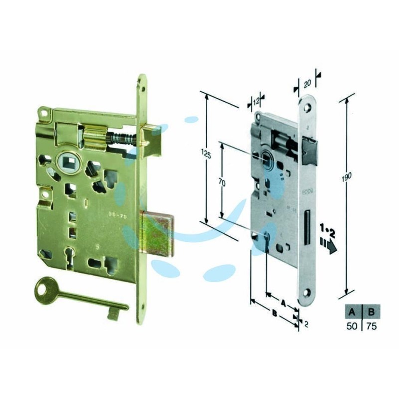 Serratura a bussola ridotta da infilare bordo tondo ottonato - 1 PZ