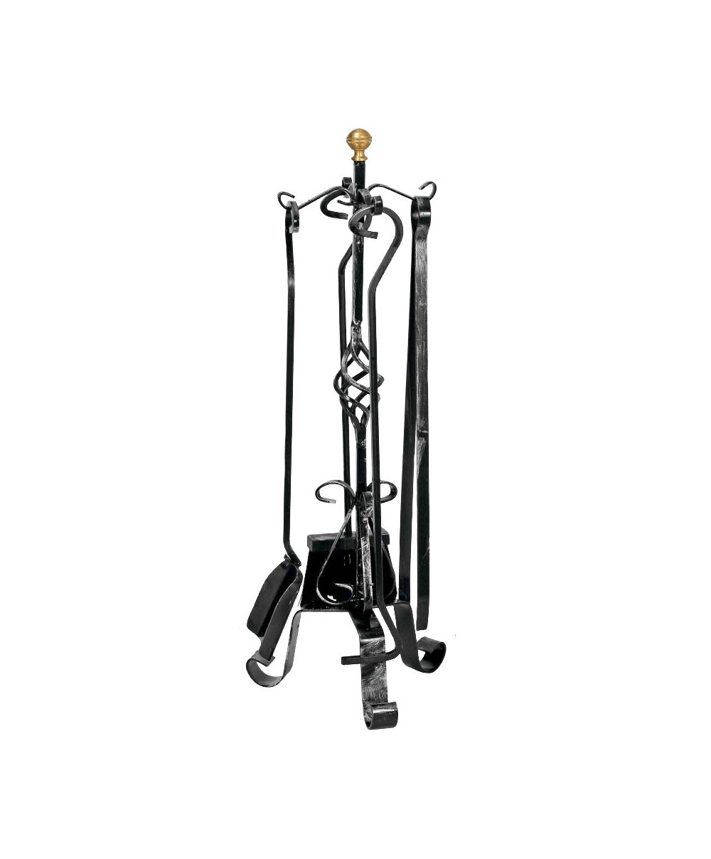 Include un supporto a tre piedi, 1 spazzola, 1 paletta, 1 pinza e 1 attizzatoio. Il design a forma di gancio delle maniglie ne facilita il prelievo. Colore nero.