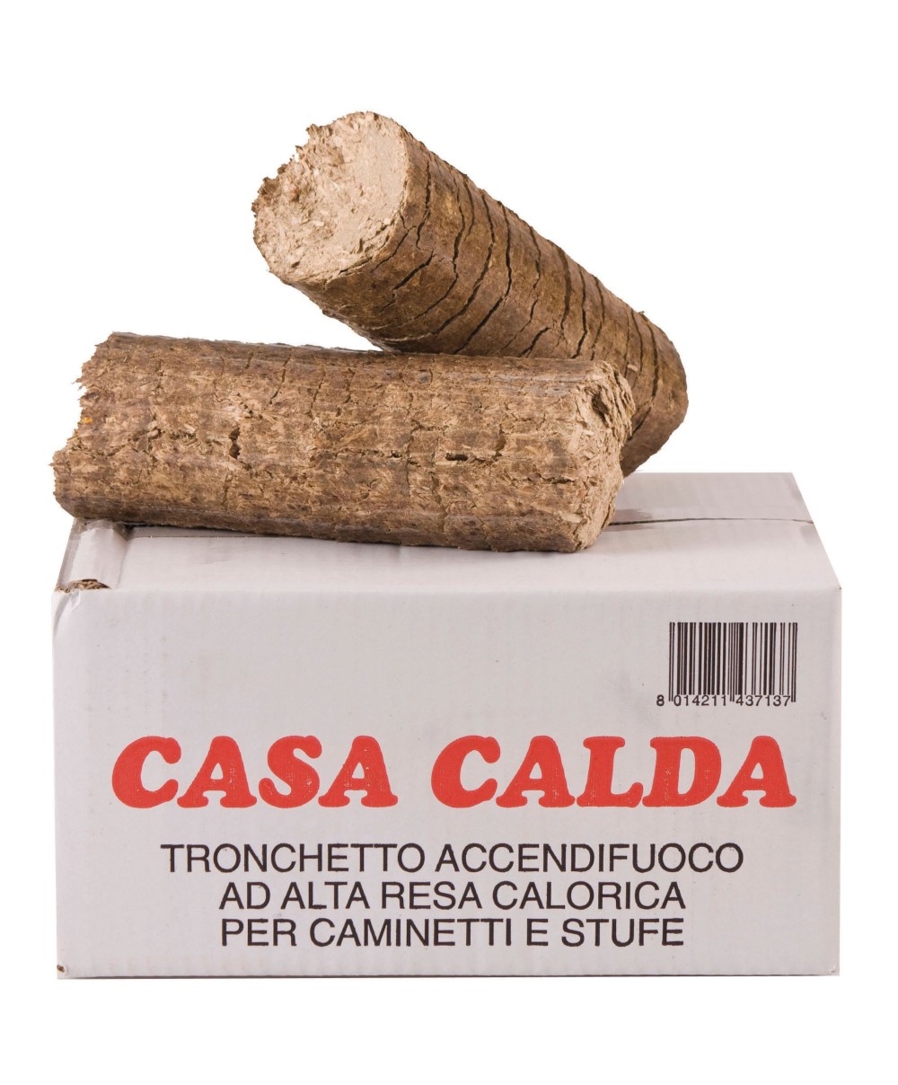 Mod. CASA CALDA accendifuoco conosciuto anche con il nome bricchetto, è un biocombustibile solido di legno che si presenta sotto forma di cilindri ad altissima densità e ridotta umidità. Per stufe e camini. Confezione da 8 pezzi