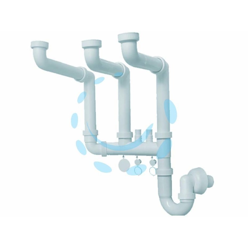 Sifone moplen libero 3 vie con 2 scarichi - 1 PZ