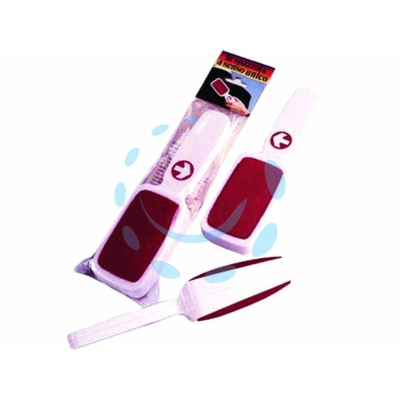 velluto di prima qualità - con manico - l'originale e la più imitata - la doppia superficie spazzolante e lo speciale velluto tecnico, rendono questa spazzola indispensabile e insostituibile, in grado di pulire in modo perfetto ogni tipo di tessuto, anche i più difficili - queste caratteristiche hanno fatto della SPAZZOLA A SENSO UNICO uno strumento affermato da anni non solo sul mercato nazionale ma anche all'estero, tanto da essere ripetutamente la più imitata dalla concorrenza - è confezionata in un sacchetto trasparente con un cartoncino dove vi sono illustrate le principali caratteristiche.