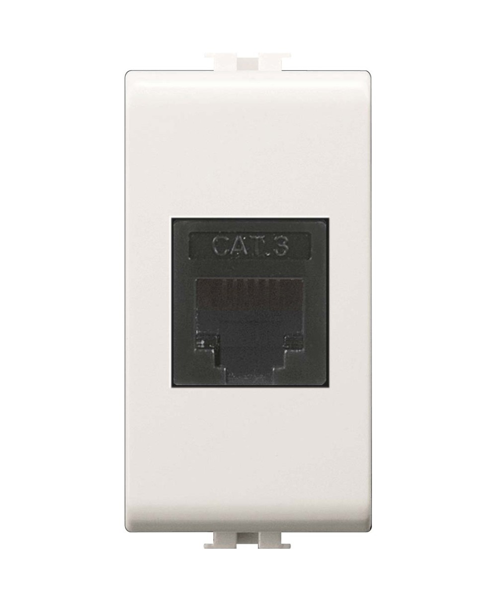 Serie EASY a norma di sicurezza. Art. SE8989C4 presa telefonica e trasmissione dati RJ11 plug 6/4, RJ12 plug 6/6 autocrimpante. Compatibile per serie Bticino Matix. Finitura bianco