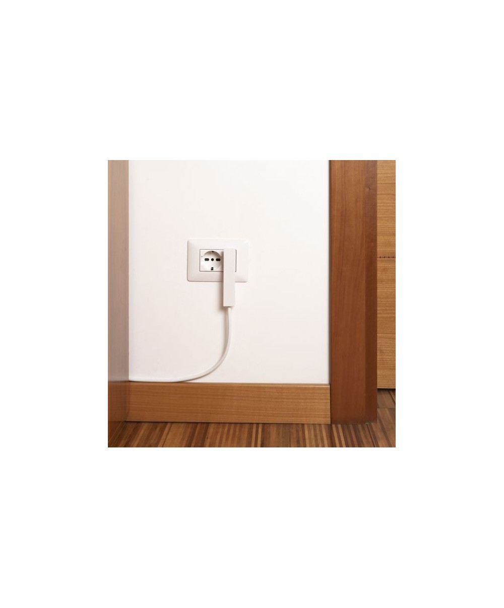 Art. 80.090 Mod. Clock. Spina a squadra smontabile e salvaspazio da 16A (grande) 2P+T - 250V - 50/60 Hz - IP20. Corpo in tecnopolimero ad alta resistenza. Conforme alle norme CEI. Colore bianco.