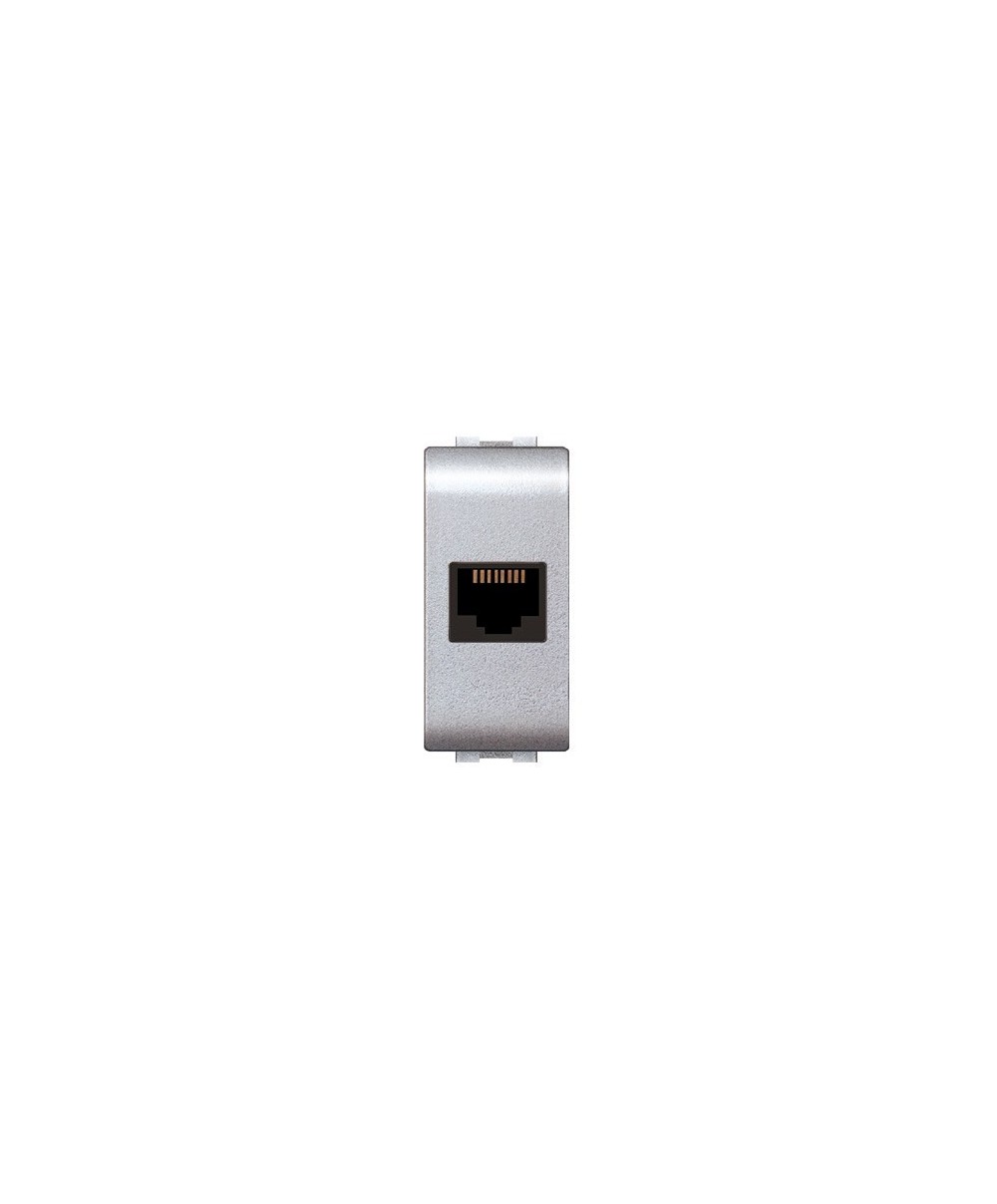 Serie MY LIFE 4000 TEC a norma di sicurezza. Art. 4084 Presa telefonica RJ11 plug 6/4c. Colore argento satinato.