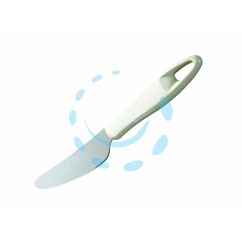 acciaio inox ottima qualità - plastica resistente - foro appendere - colore bianco - lavabile in lavastoviglie - ideale per spalmare burro, marmellate, paté vari e salse dense