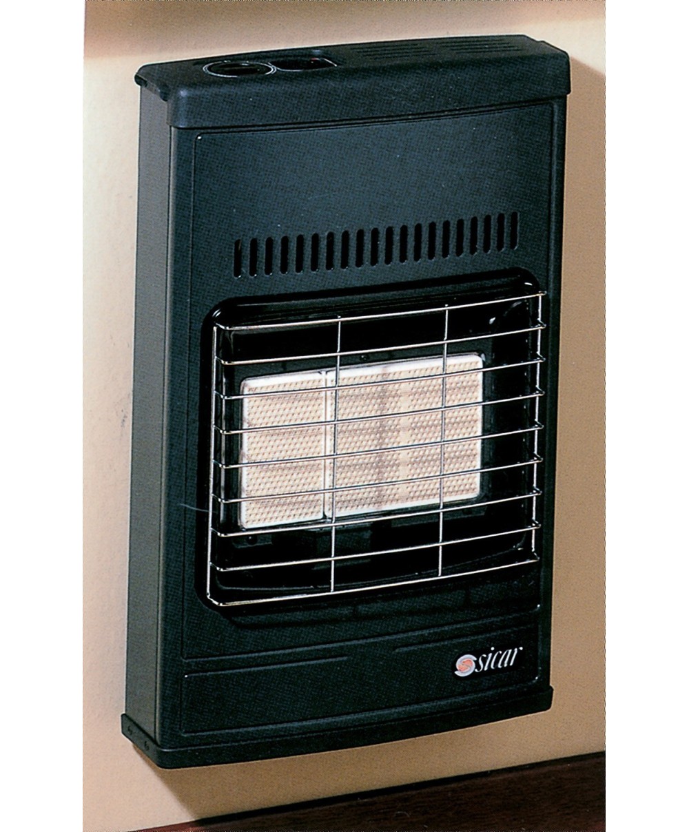 Mod. ECO 40 A gas metano. Doppio sistema di sicurezza grazie all'analizzatore di atmosfera che spegne automaticamente la stufa se la percentuale di anidride carbonica raggiunge l'1,5% ed interrompe l'erogazione del gas in caso di spegnimento accidentale. Gruppo radiante composto da 3 piastre ceramiche, in grado di erogare diverse potenze di calore. Potenza max 4.200W. Installabile a parete o a pavimento. Piedini per pavimento. Accensione piezoelettrica. Volume riscaldabile max 110 m². Dimensioni 43 x 15 x h 64 cm. Peso 6,5 kg.