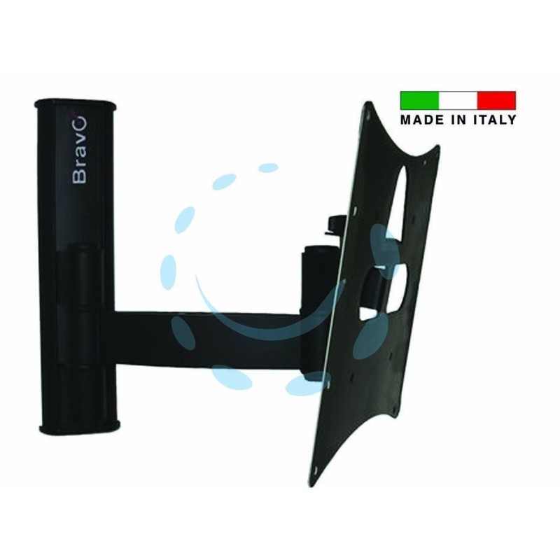 Supporto da parete ad un braccio studiato per televisori LCD da 23" a 40" - realizzato in alluminio anodizzato satinato, consente l'orientamento dello schermo in verticale con un'inclinazione di -10°/+15° ed una rotazione di circa 45° - attacco multiplo per tutti i TV (max 20x20). Compatibile con TV serie LED - portata massima 20 Kg - colore nero - made in Italy