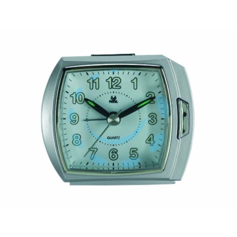 Fronte grigio - Retro bianco - 3 funzioni: allarme, snooze, luce - Movimento silenzioso - 1 batteria AA non inclusa