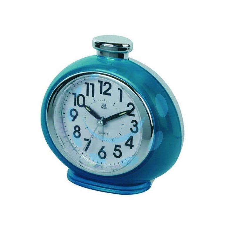 Fronte blu - Retro bianco - 3 funzioni: allarme, snooze, luce - Movimento silenzioso - 2 batterie AA non incluse
