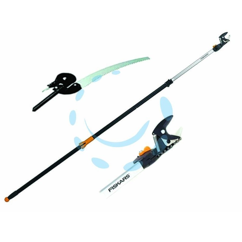 per tagliare rami max ø mm.32 - angolo di taglio regolabile (fino a 230°) - manico telescopico regolabile tubolare in alluminio verniciato con ø mm.35 - blocco di sicurezza - per tagliare rami alti fino a mt.6 circa - in dotazione: seghetto cm.38 - peso Kg.1,6
