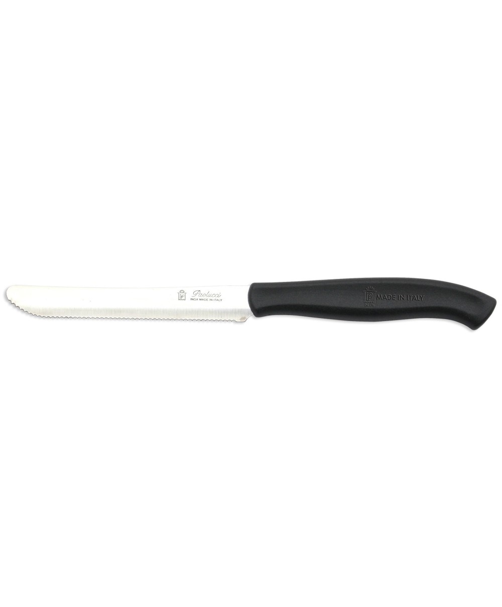 lama acciaio inox seghettata spessore 0,8 mm, manico in polipropilene. Lunghezza lama 11 cm. Interamente prodotto in Italia. Resistente in lavastoviglie. Confezione blister da 6 pezzi.