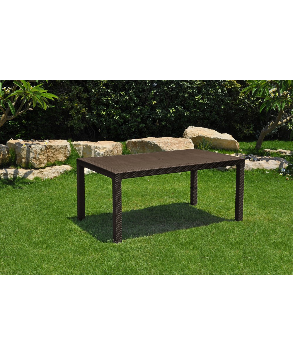tavolo in resina antiurto effetto polirattan. Dimensioni cm 160x94x74h Colore marrone