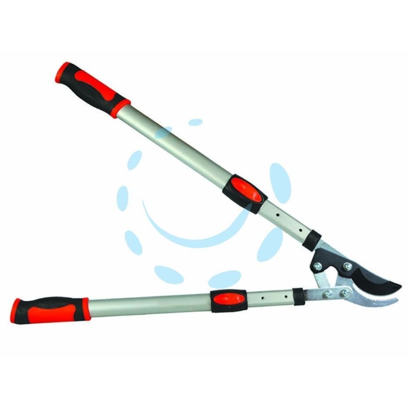 con riduttore di sforzo - lame in acciaio al teflon - impugnatura in alluminio con rivestimento in gomma antiscivolo - manici telescopici