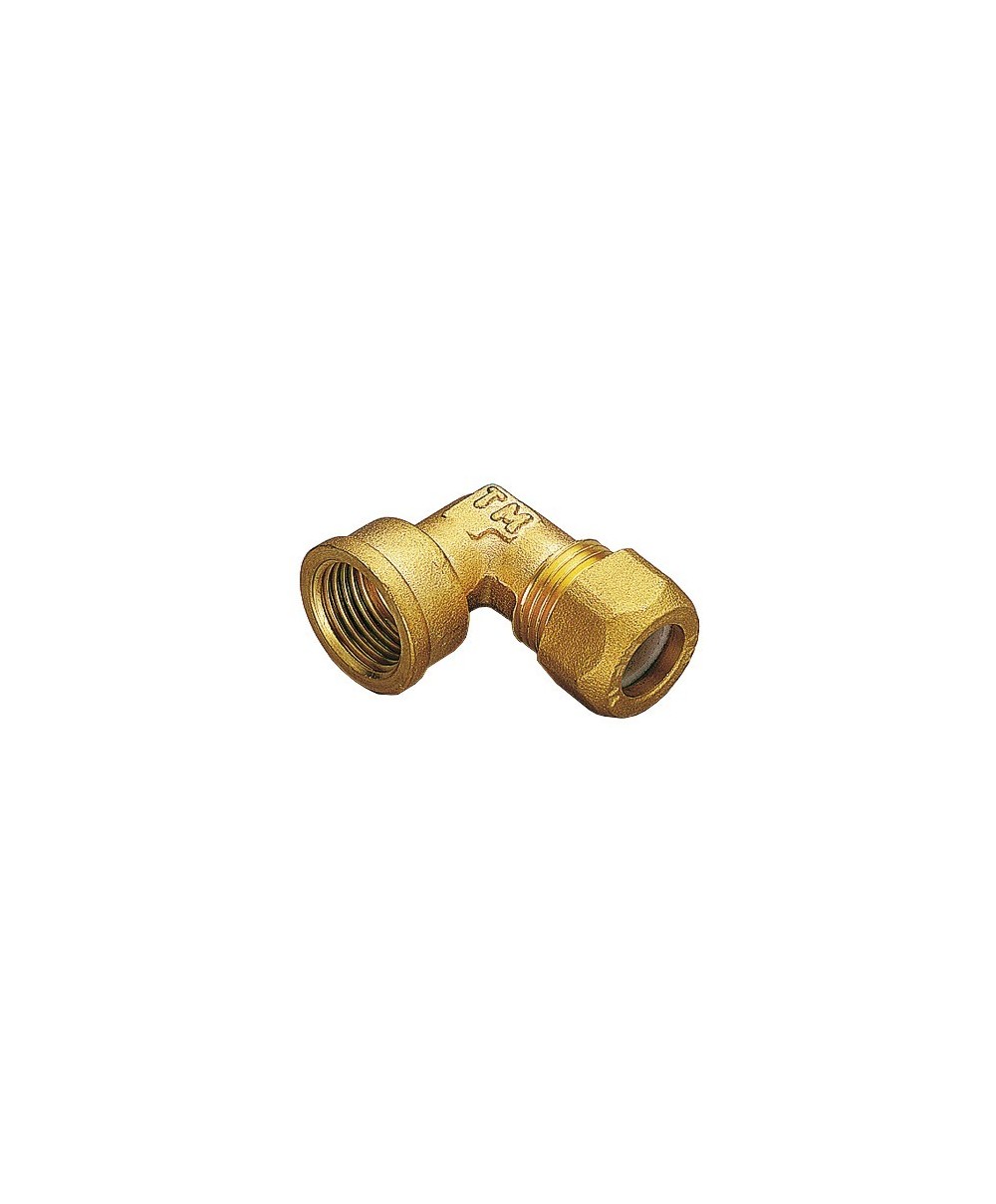 raccordo curvo in ottone, ogiva in teflon. Attacco femmina. Dimensioni 16 mm x. Temperatura di esercizio max 120 C min -20 C. Pressione max di esercizio 16 bar.