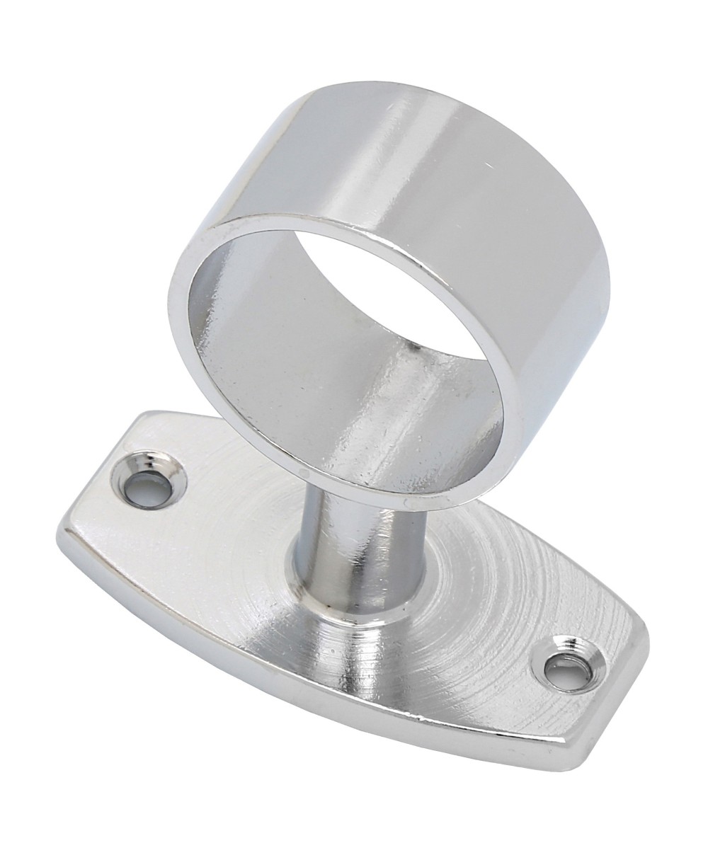 in ottone per corrimano. Piastra da avvitare 54 x 28 mm. Dimensioni passante ø 25 mm. Altezza 55 mm. Finitura cromato. Confezione blister