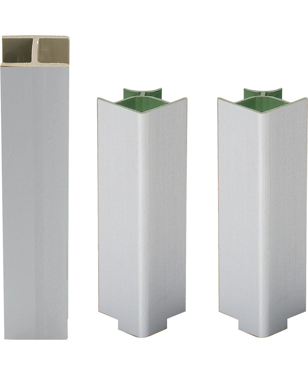 in pvc. Composto da 2 angoli 90° e 1 giunzione lineare. Per zoccoli di altezza 100mm. Colore alluminio